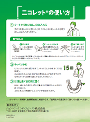 禁煙したい方に向けて、ニコレット®の使用方法を説明いただく際の資料です。ニコレット®の使い方、ニコチン置換療法のしくみを掲載しています。